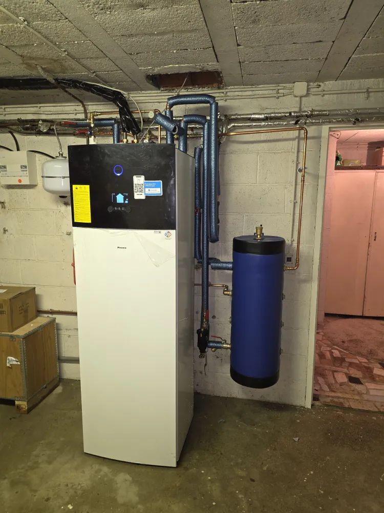 L’installation existante était composée d’une chaudière gaz devenue ancienne, avec un rendement plus faible et des coûts de fonctionnement en hausse. Après une étude technique complète, nous avons recommandé l’installation d’une pompe à chaleur air/eau Daikin, reconnue pour sa fiabilité et ses performances.